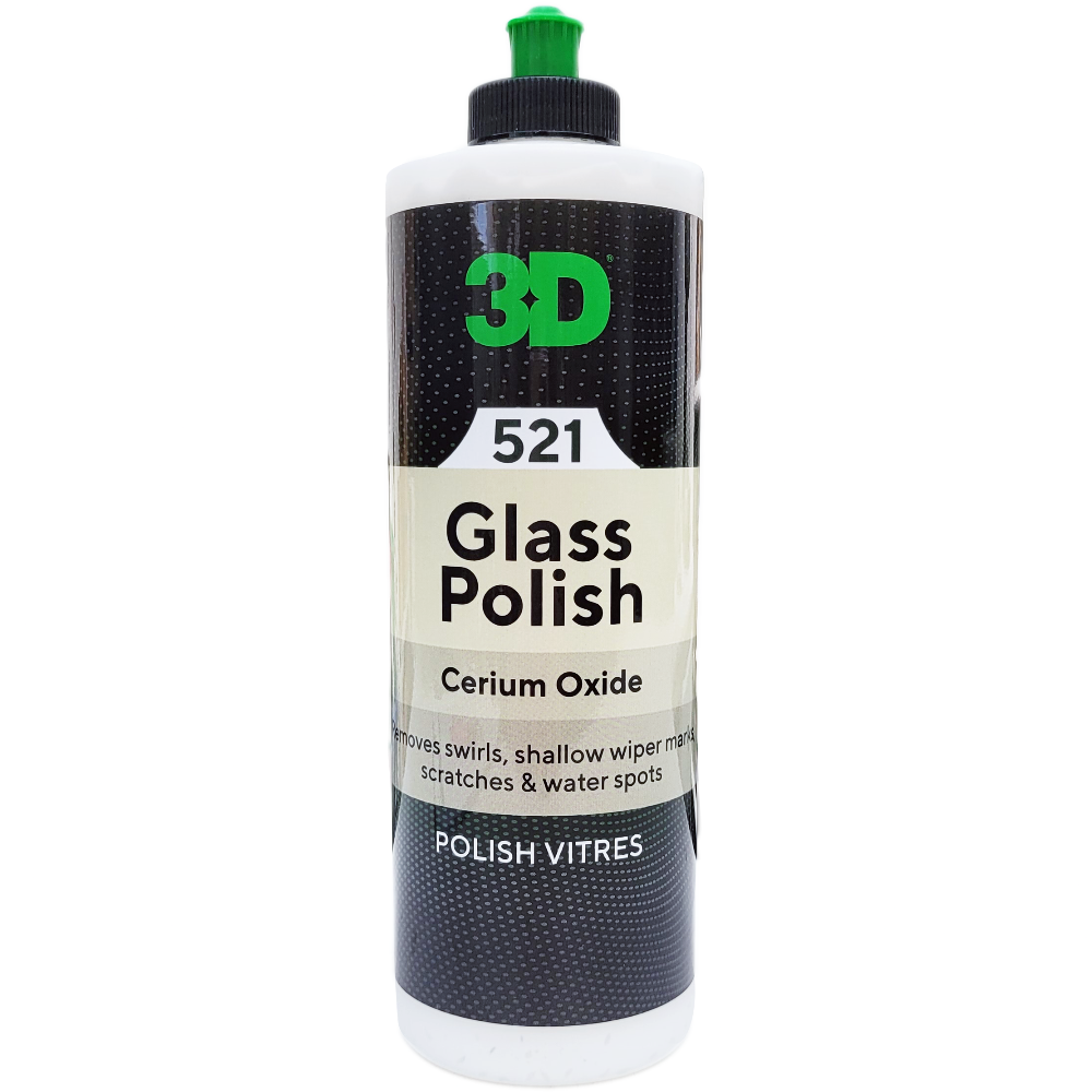 O 3D Glass Polish é um polidor à base de óxido de cério desenvolvido para remover redemoinhos, riscos, marcas de limpa-para-brisas e manchas de água das superfícies dos vidros dos automóveis. A nossa fórmula exclusiva é fácil de utilizar, exigindo o mínimo de esforço para aplicar e limpar, proporcionando uma visão e clareza superiores, como se fossem novas.